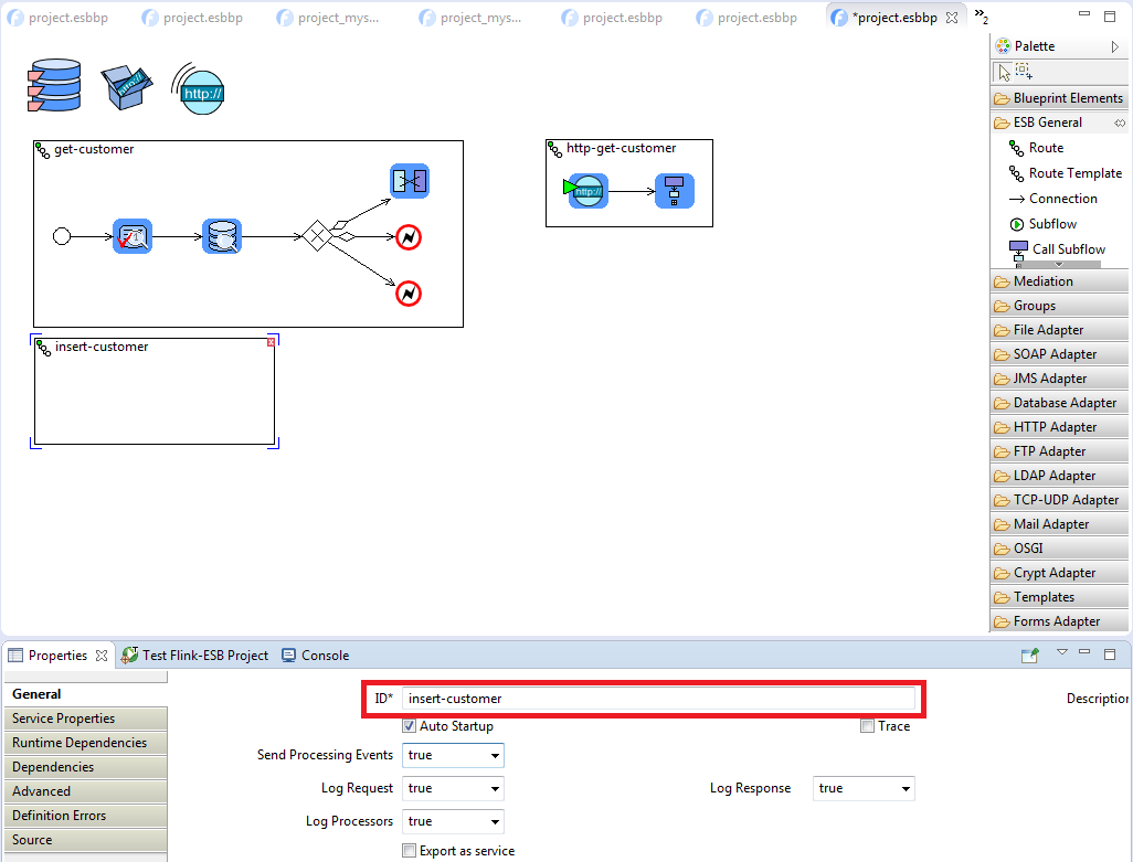 Go to Flink-ESB Editor and create another route. Call it "http-insert-customer".