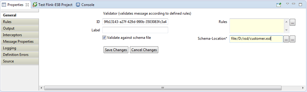 With this route we are going to send XML document, containing customer data, that must be inserted into the database. So, it is important to validate an incoming message, and check whether it has correct format. Since it is XML message, we will validate it by parsing it against XML schema file.
