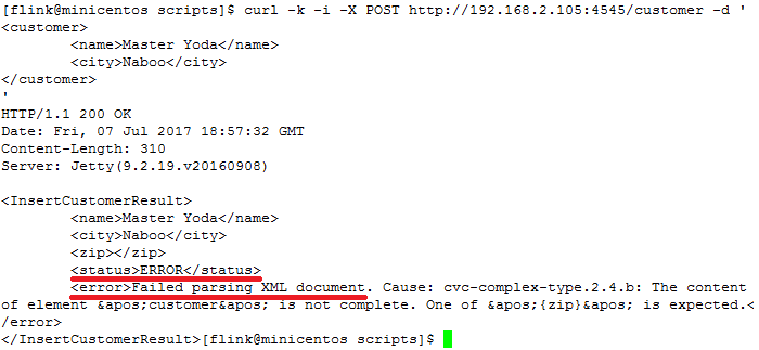 curl -k -i -X POST http://localhost:4545/customer -d '