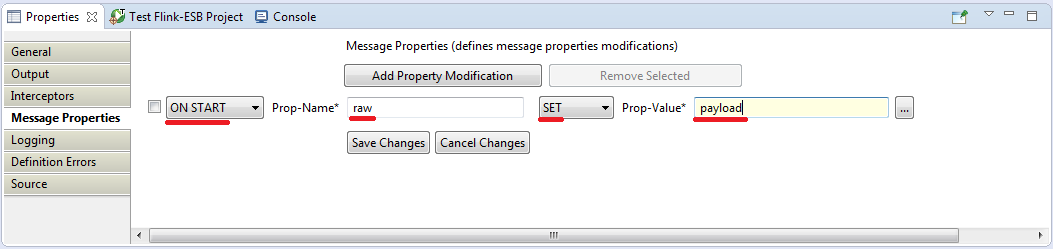 Click "Save Changes". Select "Message Properties" tab in the properties window and click "Add Property Modification" button. Enter data as on picture below: