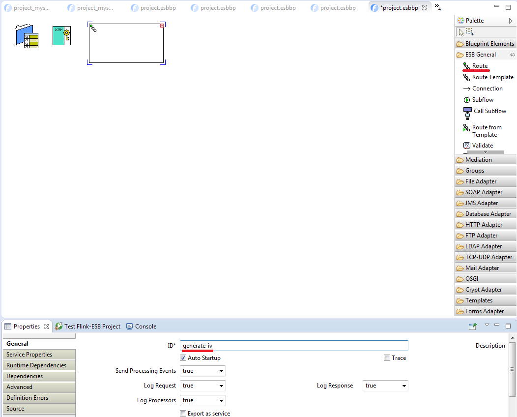 Add a new route to the project in Flink-ESB Editor. Enter its "ID" property as load-iv. Click "Save Changes".