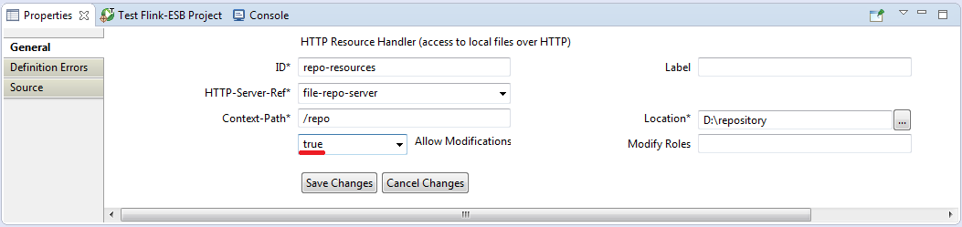 Click "Save Changes" to save Resource Handler's properties.
