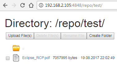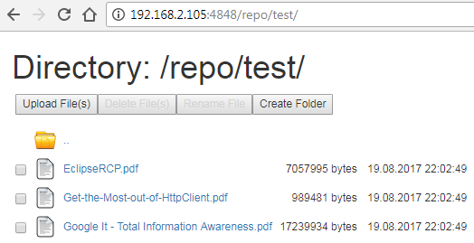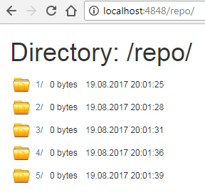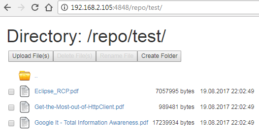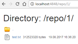 Go ahead and try reaching repository from another machine. Just make sure to use repository's IP instead of "localhost" in the URL. You should be able to view all the files and folders in the repository: