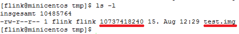 This creates a file with name "test2.img" and size of 5 GB. Now let us upload this file to remote file repository: